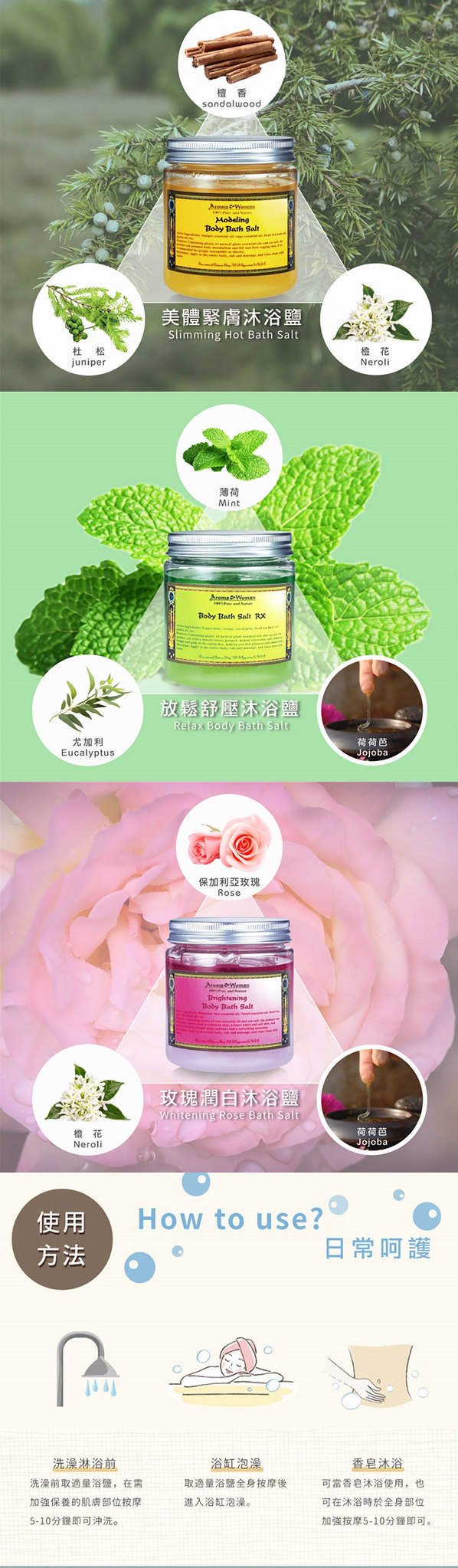 舒緩緊繃肌膚,軟化身體角質,具有清潔、滋潤、維持彈性肌膚。
