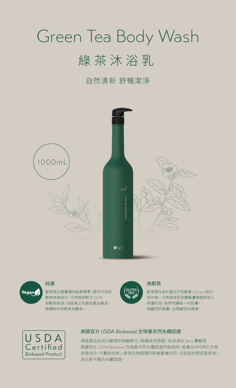 O'right 歐萊德 綠茶沐浴乳1000mL (典藏版)