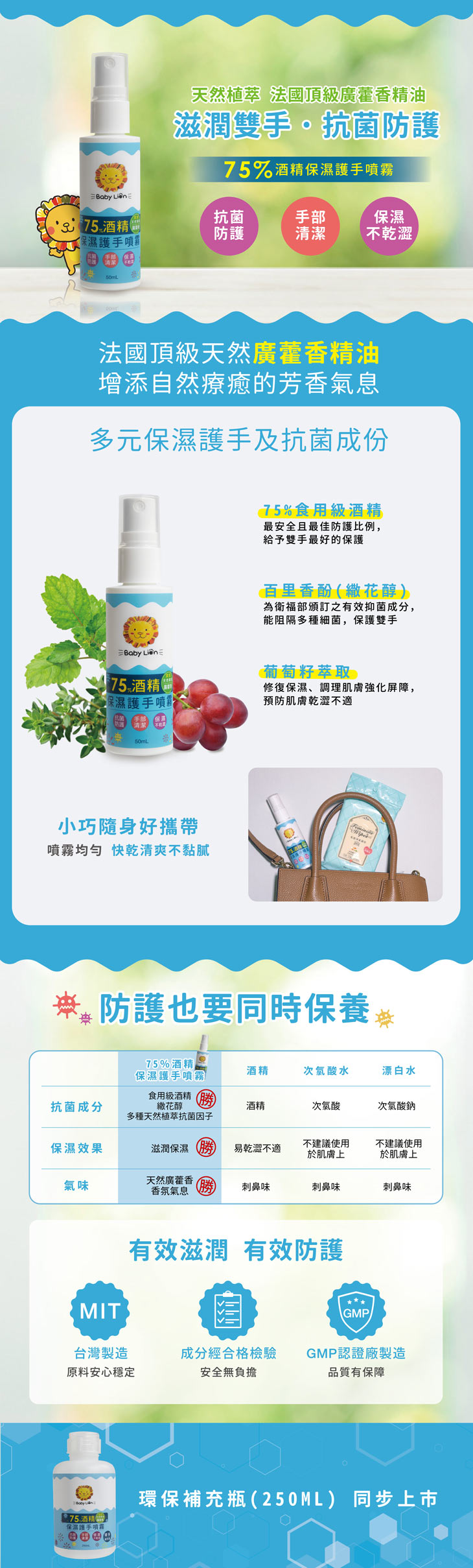 【75%酒精噴霧】天然植萃 法國頂級廣藿香精油滋潤雙手、抗菌防護台灣製