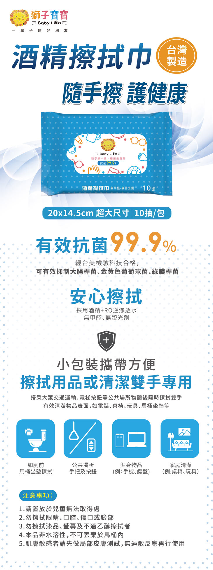 【酒精抗菌擦拭巾 10抽】***採用食品級酒精***抗菌99.9%,可有效抑制大腸桿菌、金黃色葡萄球菌、綠膿桿菌、肺炎桿菌,無甲醇、無螢光劑。台灣製