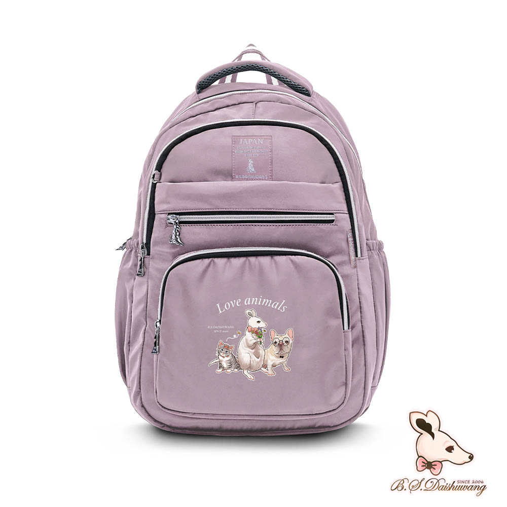 B.S.D.S冰山袋鼠 - 動物派對 - 輕旅多層大容量附插袋後背包 - 粉紫色【Z1810-3P】